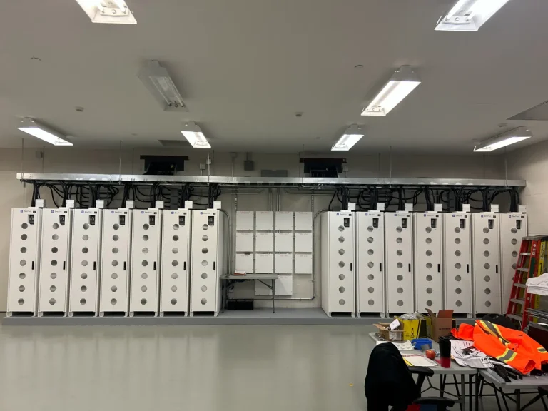 Installation of front-access battery backup systems designed to improve maintenance accessibility and operational efficiency within a high-density data center environment.